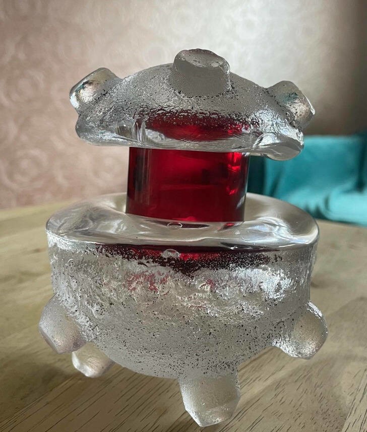 : «Зважаючи на червону частину, це, швидше всього, химерний свічник, а верхня частина призначена для того, щоб погасити свічку».