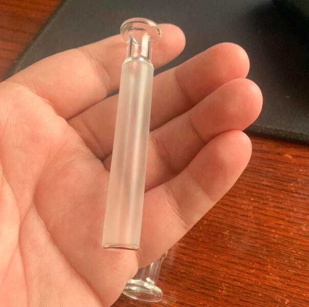 10. «Знайшов це сьогодні на роботі, залишив хтось із нічні робочі. Цілісне з усіх боків. Отворів взагалі нема. Порожнє скло, золота окантовка на одному кінці».