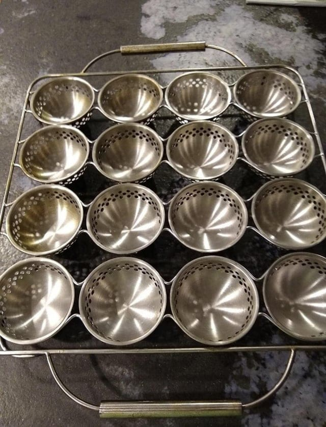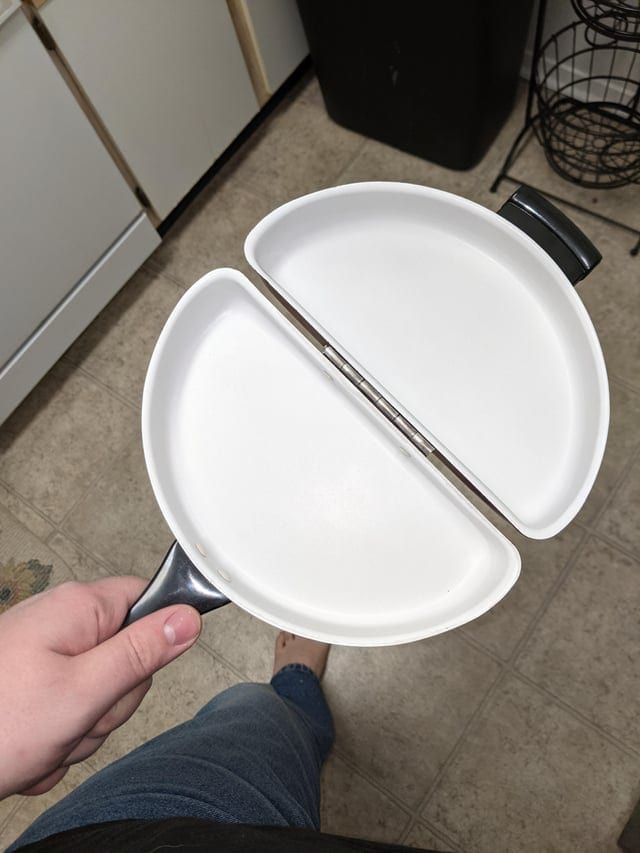 Урожай сковорідка для приготування омлету. Такі сковорідки були популярними у 1970-1980-х роках. Ви готуєте омлет з одного боку, а потім перевертаєте сковороду, щоб він підсмажився з іншого боку.
