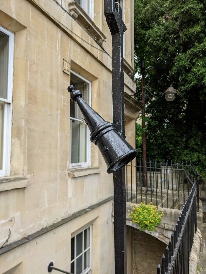2. "Залізний конус по обидва боки воріт біля входу до будівлі в Баті, Англія"