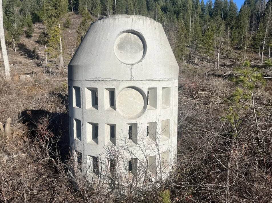 Може хтось сказати мені, що це за штука? Я знайшов це у лісі. Є безліч отворів прямокутної форми та люк нагорі. Всередині нічого»