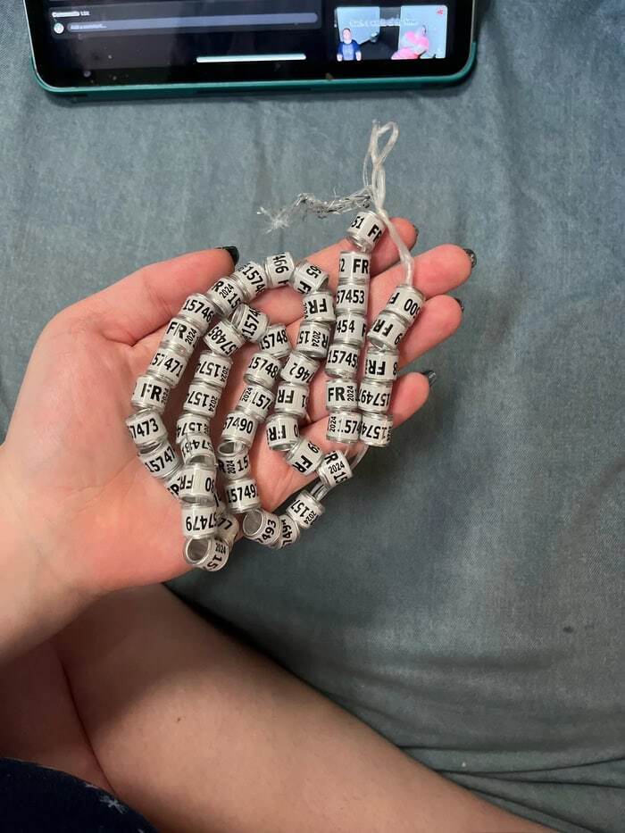 «Отримав це поштою. Круглі кільця на мотузці? Здається, що вони виготовлені з алюмінію та пластику, з унікальними ідентифікаційними номерами на кожному кільці»