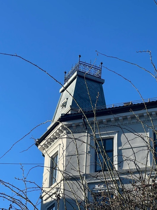 Що це за крихітні кімнати на даху з вікнами і парканом зверху? Особливо цікавим є призначення паркану. Бачив в Осло, Норвегія»
