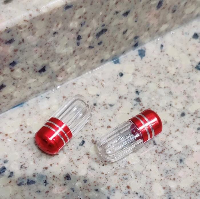 Це упаковка з-під таблеток, які часто продаються на заправних станціях у США. Зазвичай у капсули упаковують Віагру, іноді — інші засоби, наприклад, болезаспокійливі.
