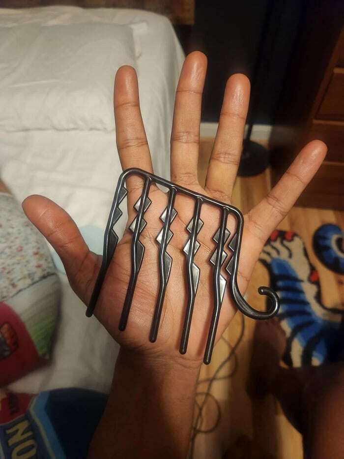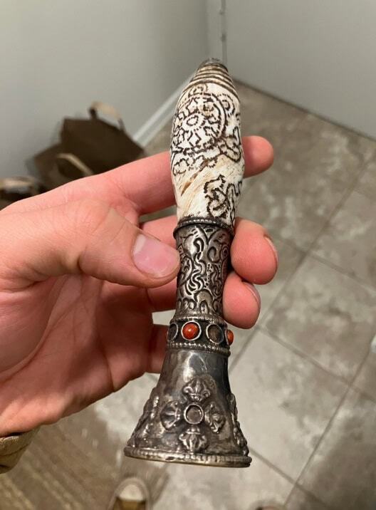 Я знайшов цю штуку в комісійному магазині. Здається, вона зроблена з кістки, срібла та каміння. Дуже важка»