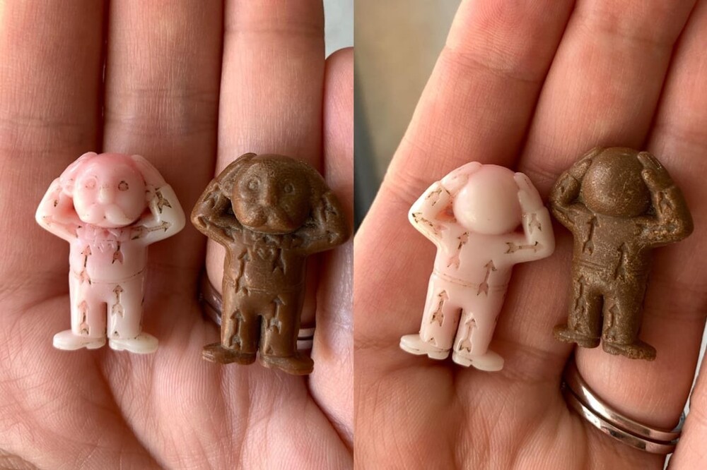 7. Маленькі пластикові фігурки, закопані на задньому дворі. Лисі чоловіки з вусами та руками на голові