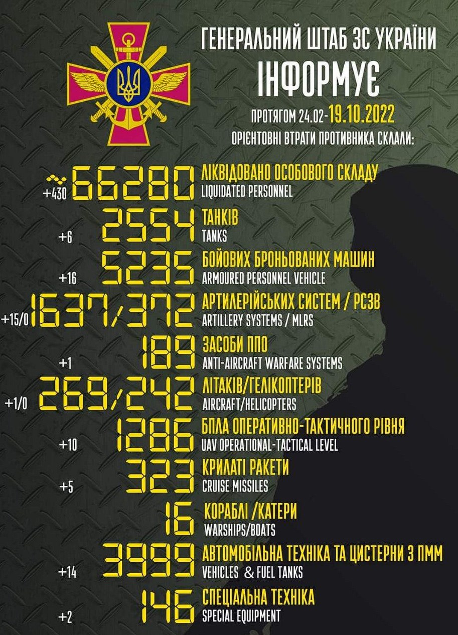 Отже, часткове військове становище введено до Донецькаой, Херсонській, Запорізькій, Луганській областях. Режим НП оголошено у Криму, Севастополі, Краснодарському краї, Білгородській, Брянській, Воронезькій, Курській, Ростовській областях. Подібні, але більш полегшені особливі режими будуть і в усіх регіонах Центрального Південного округів, включаючи Москву.