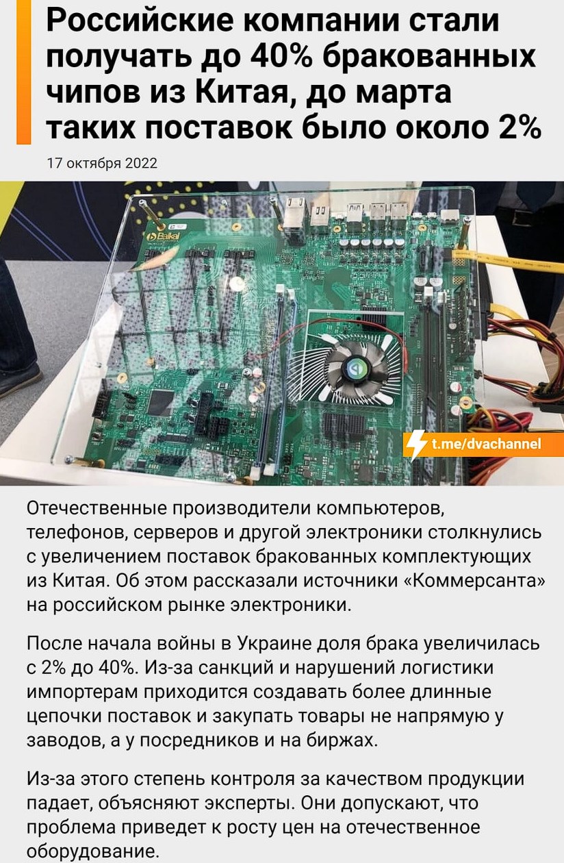 - Російські компанії стали отримувати до 40% бракованих чіпів з Китаю, до березня таких постачань було близько 2%
