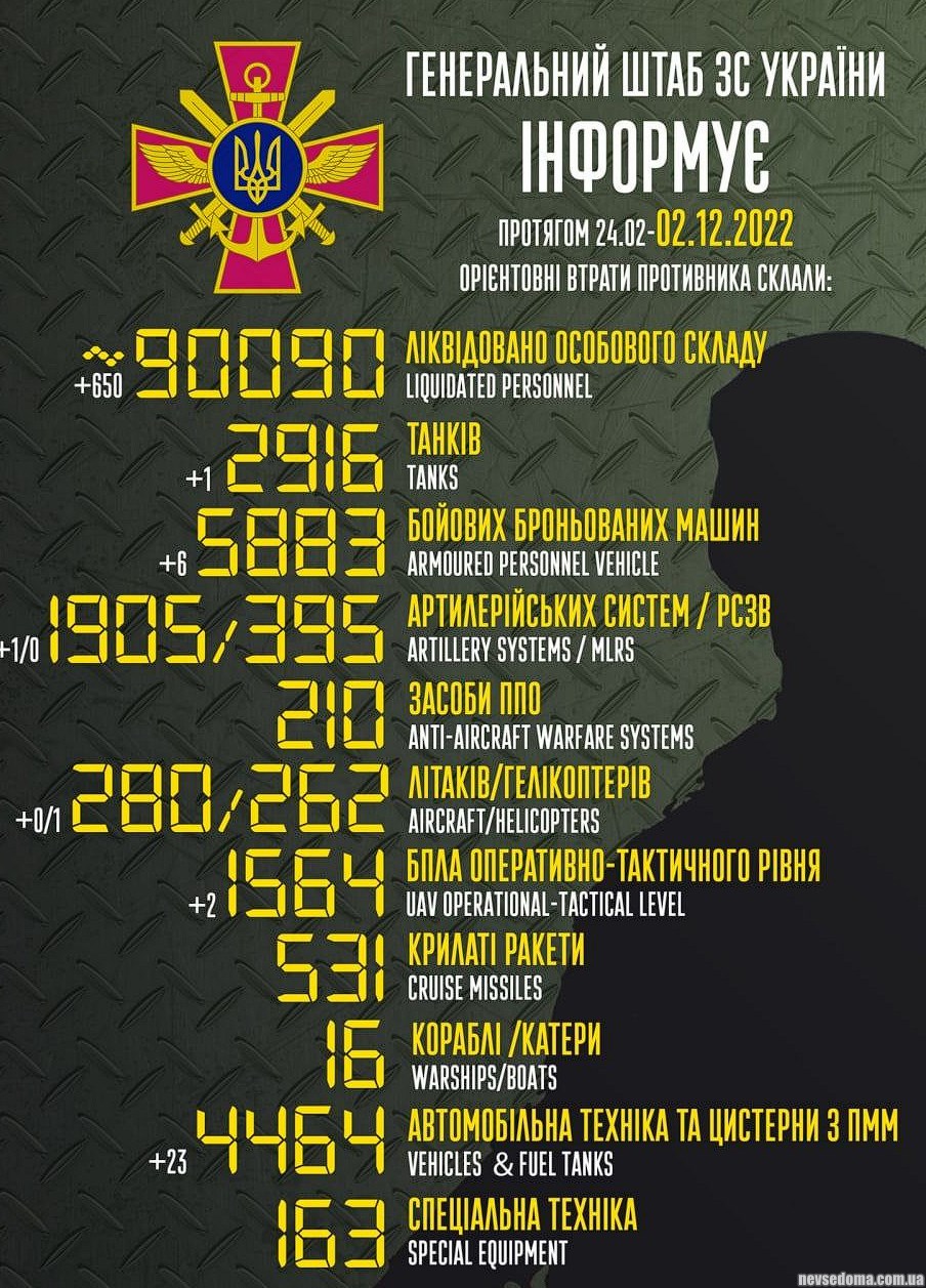 +650 загиблих ЗС РФ за добу (всього вже 90.000+)