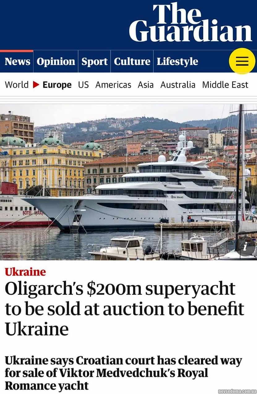 - Таке нам треба: суперяхту Royal Romance Медведчука вартістю 200 млн доларів продадуть на аукціоні, — The Guardian.