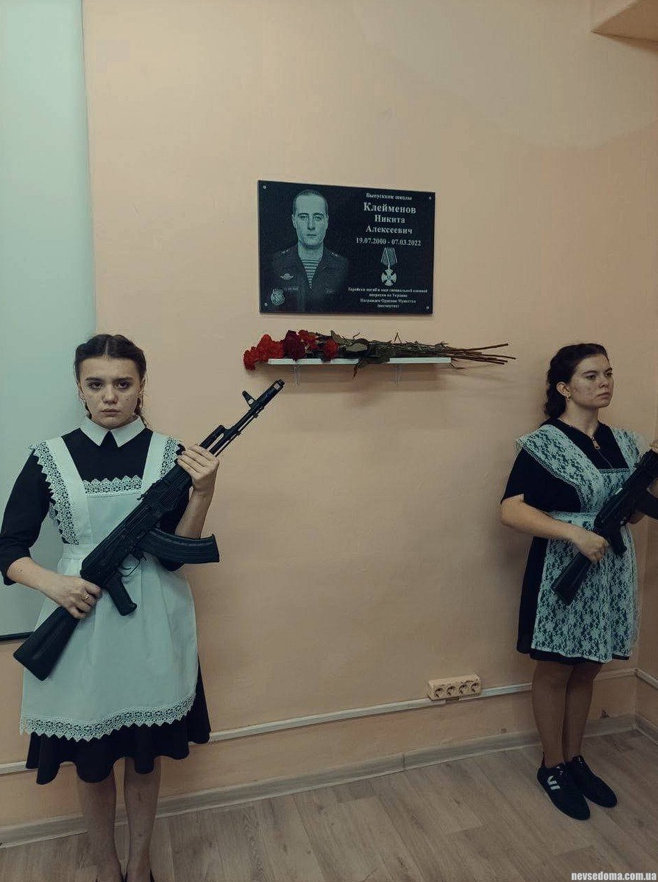 - Діти з автоматами на відкритті меморіальної дошки загиблому окупанту в Пензі