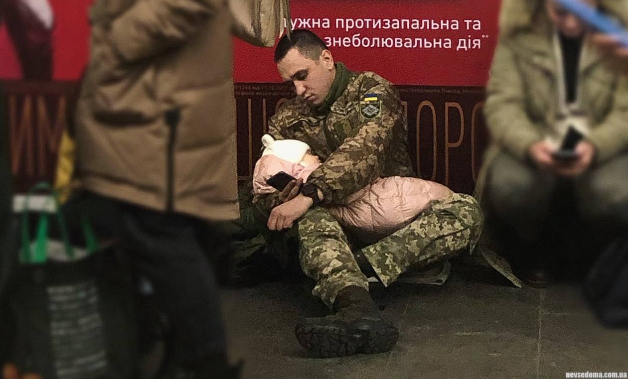 - Київ, метро сьогодні. Батько з дочкою чекають на атаку русні.