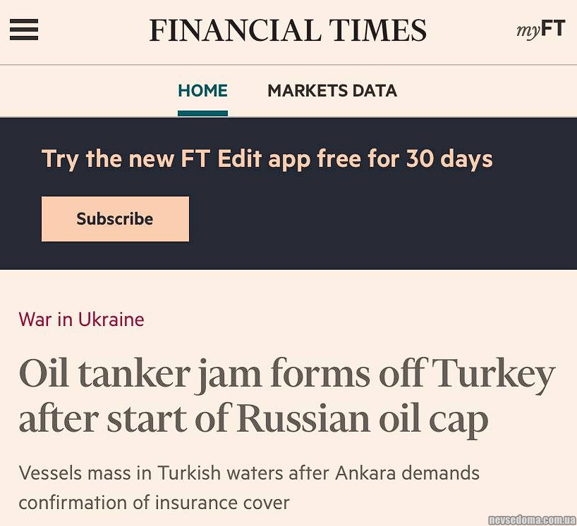 - Затор з танкерів утворився у водах Туреччини після введення ліміту цін на нафту Росії, пише Financial Times. Дозволи увійти до проток Босфор і Дарданелли чекають 19 суден з нафтою. Затор пов'язаний з тим, що Туреччина вимагає додаткових підтверджень страховки танкерів.