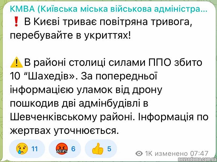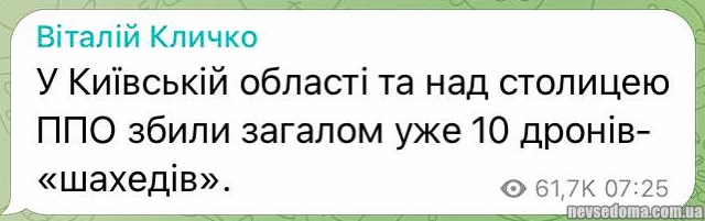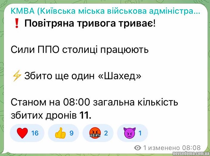 - Над столицею пройшли ще один мопед. Усього збили 11 дронів. ППО – силища!