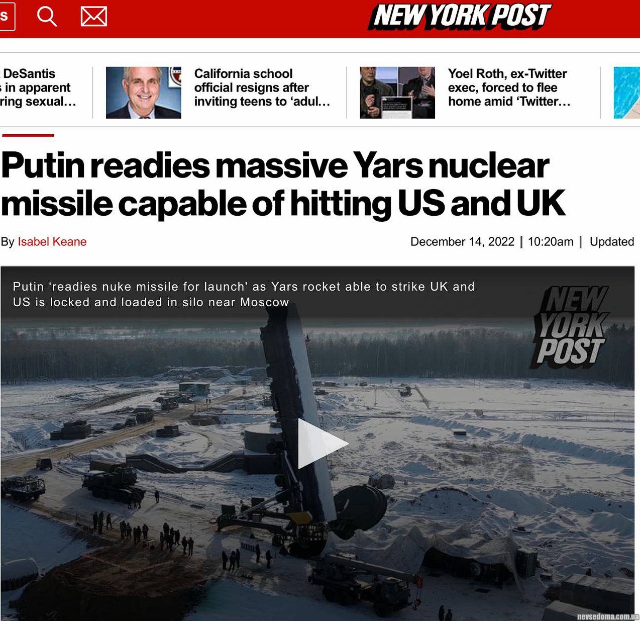- путін готує потужну ядерну ракету «Ярс» здатну завдати удару США і Великобританії, — New York Post.