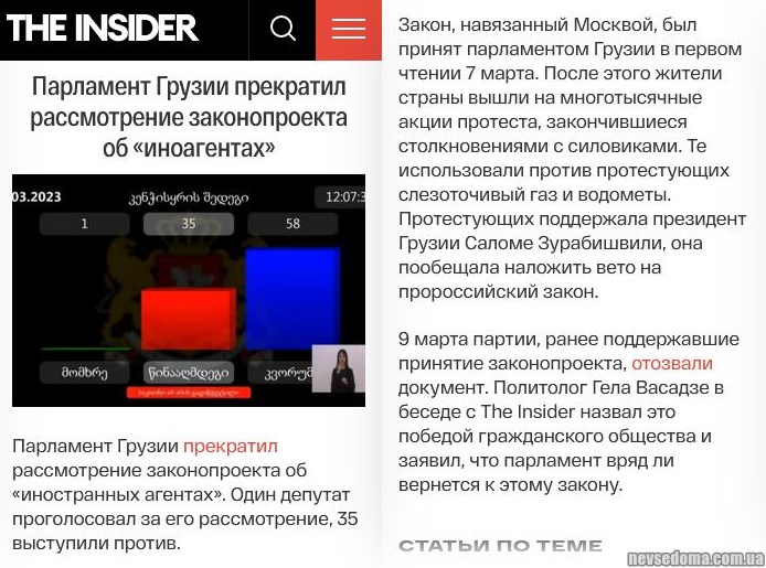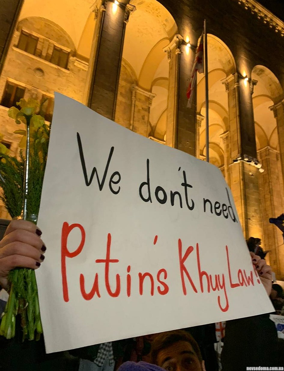 Закон відкликали, але проросійські мудаки у владі залишилися, тож грузини на чеку