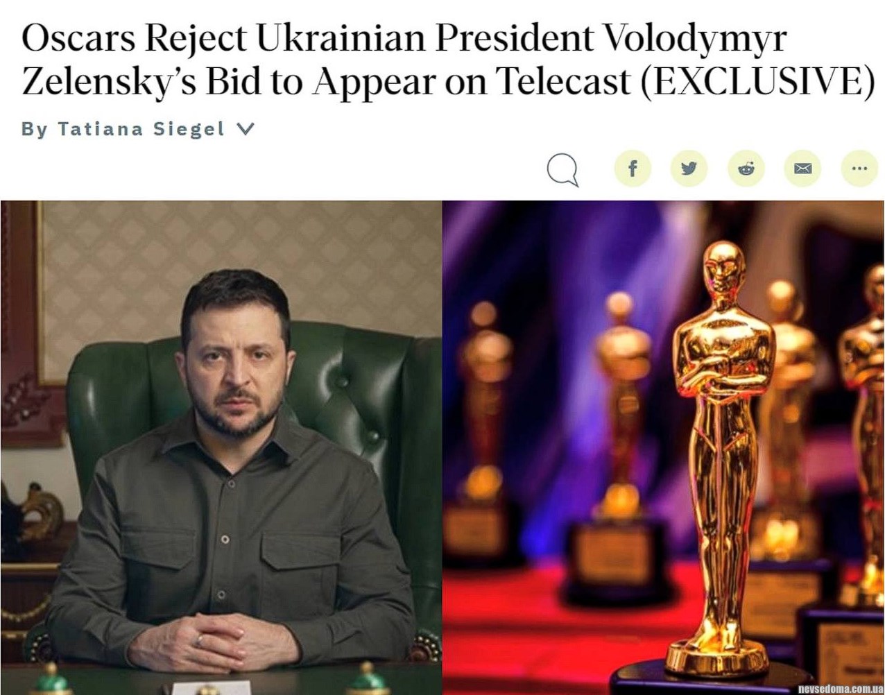 - "Оскар" відхилив заявку Володимира Зеленського на участь у церемонії, — Variety.