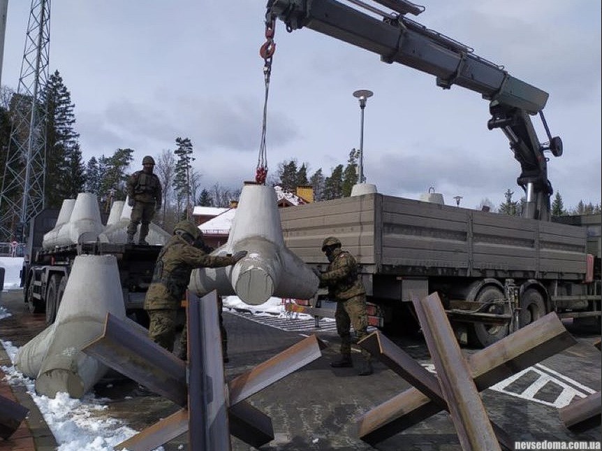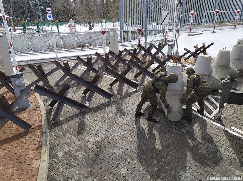 - Польські військові ставлять протитанкові їжаки на дорогах, що ведуть із Білорусі.