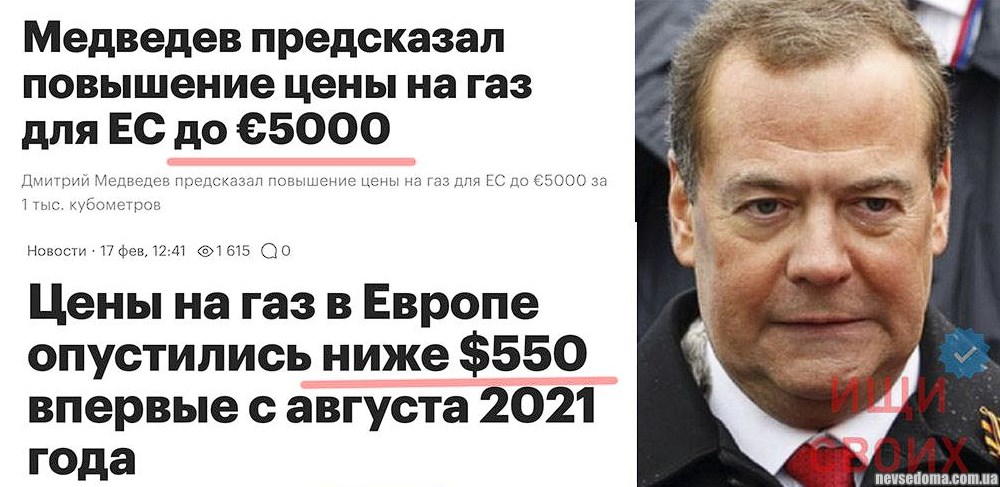 - Алкоголік Медведєв з неймовірною точністю 😆 спрогнозував ціну на «газ батюшку»