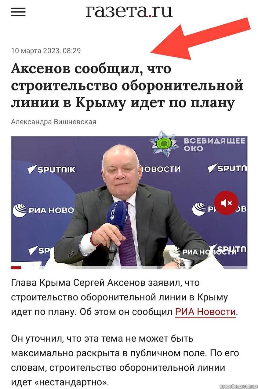 Гауляйтер Криму Аксьонов раптово розхвилювався і заявив, що будівництво оборонної лінії у Криму йде за планом, враховується досвід бойових дій.