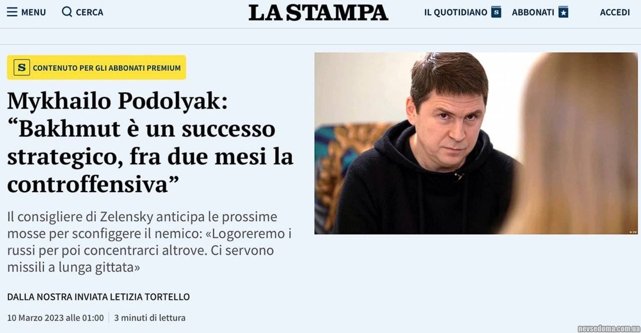 "Нам потрібні ракети великої дальності. Ми потребуємо ракети великої дальності. Ми потребуємо ракети великої дальності. Ми потребуємо ракети великої дальності. Поспішаємо, реорганізуємося протягом наступних 2 місяців, змотаємо росіян у Бахмуті, а потім зосередимося в іншому місці, - сказав він в інтерв'ю La Stampa.