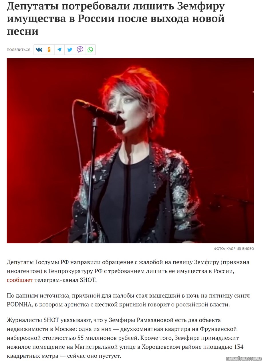 - Варто було Земфірі написати нову пісню, як у Держдумі одразу вирішили співачку пограбувати