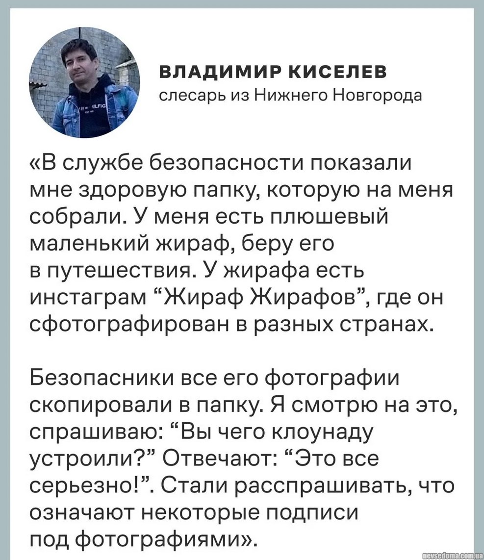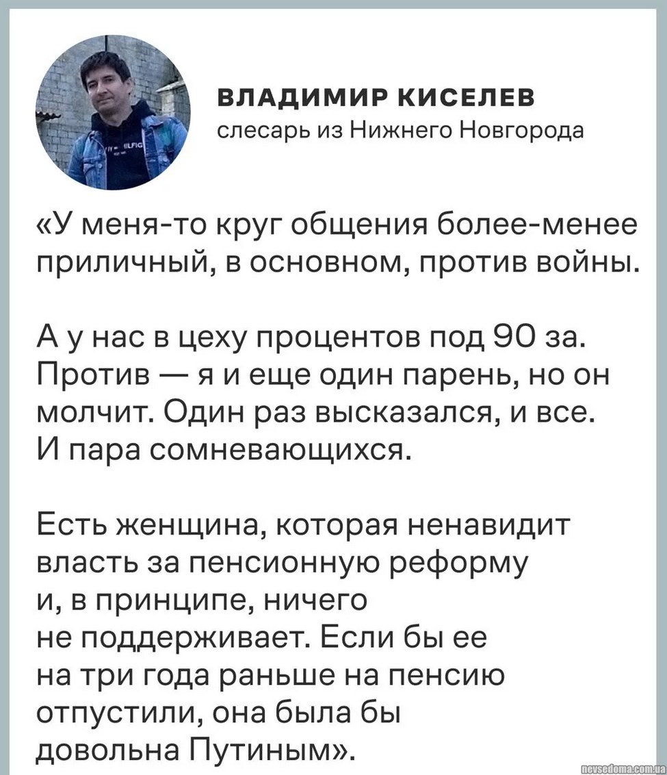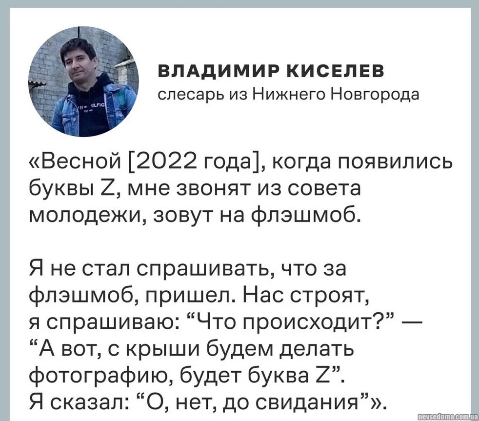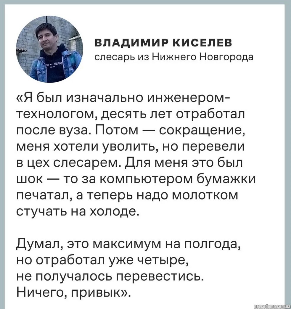 - ОВС-Інфо розповідає історію слюсаря з Нижнього Новгорода, якого звільнили за антивоєнні погляди. Зараз Володимир шукає нову роботу, але це буде непросто: минулий роботодавець вніс його до чорного списку, і тепер кожен відділ кадрів у місті може вважати його небажаною персоною.