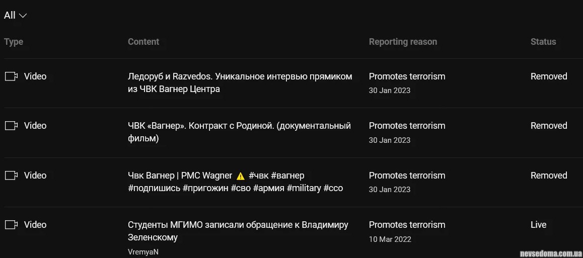 - "Заходи щодо контенту, про який ви повідомили". Нарешті, контент групи Говнера почали викидати нах із західних майданчиків.