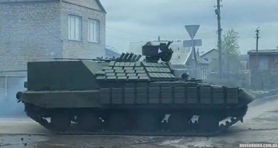 - Українська бронемашина-мутант на базі танка Т-64 без вежі, але з кулеметом та динамічним захистом «Контакт-1» помічена під Бахмутом.