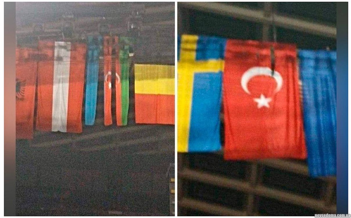 Прапори Азербайджану та Туреччини були вивішені у розірваному стані.