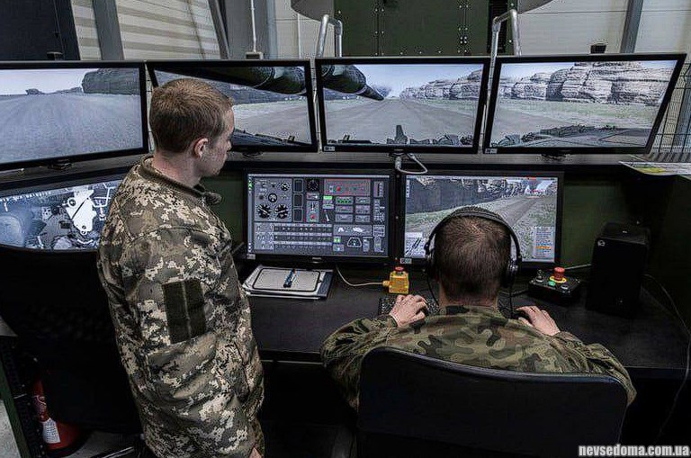 - Українські солдати на танку Leopard 2 тренуються у Польщі на тренажерах.