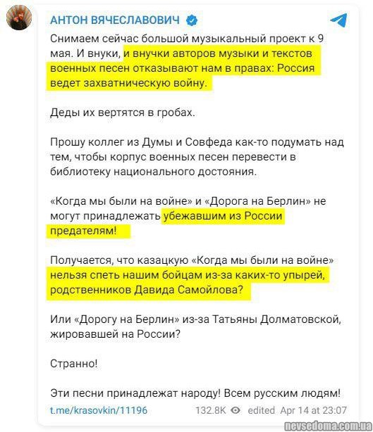 - "Вістка, не від друзів, не від подруг"