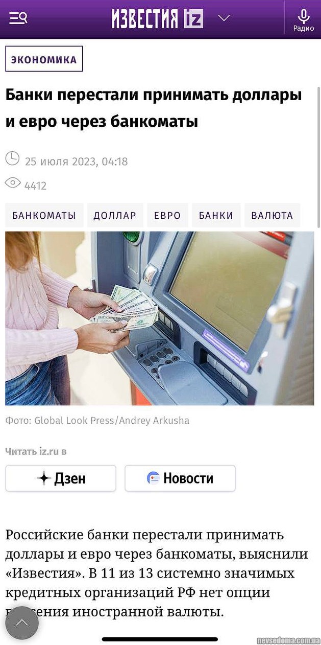 - Банкомати найбільших банків РФ перестали приймати долари та євро