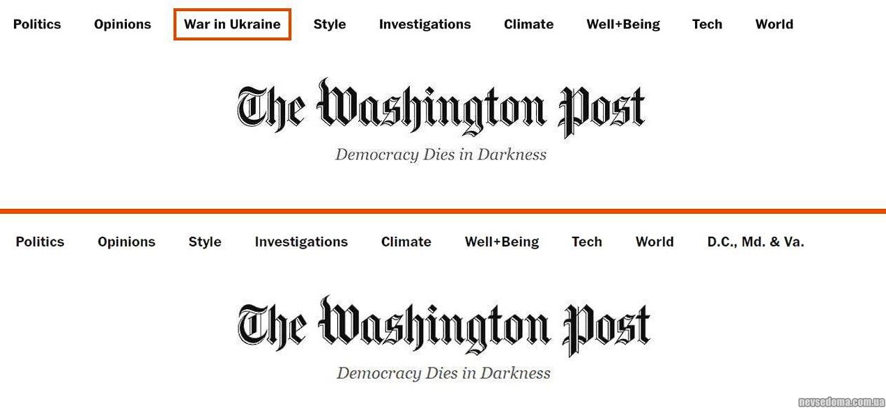 - Washington Post видалила зі свого сайту окремий розділ «Війна в Україні».