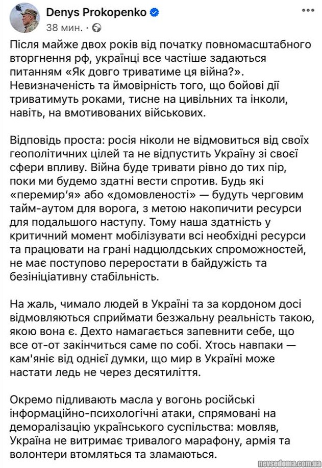 росіянина ніколи не захоче відпустити Україну, і будь-які переговори тільки дадуть їм перепочинок, щоб наростити війська. Саме від нас, наших донатів та допомоги фронту залежить, коли настане перемога.