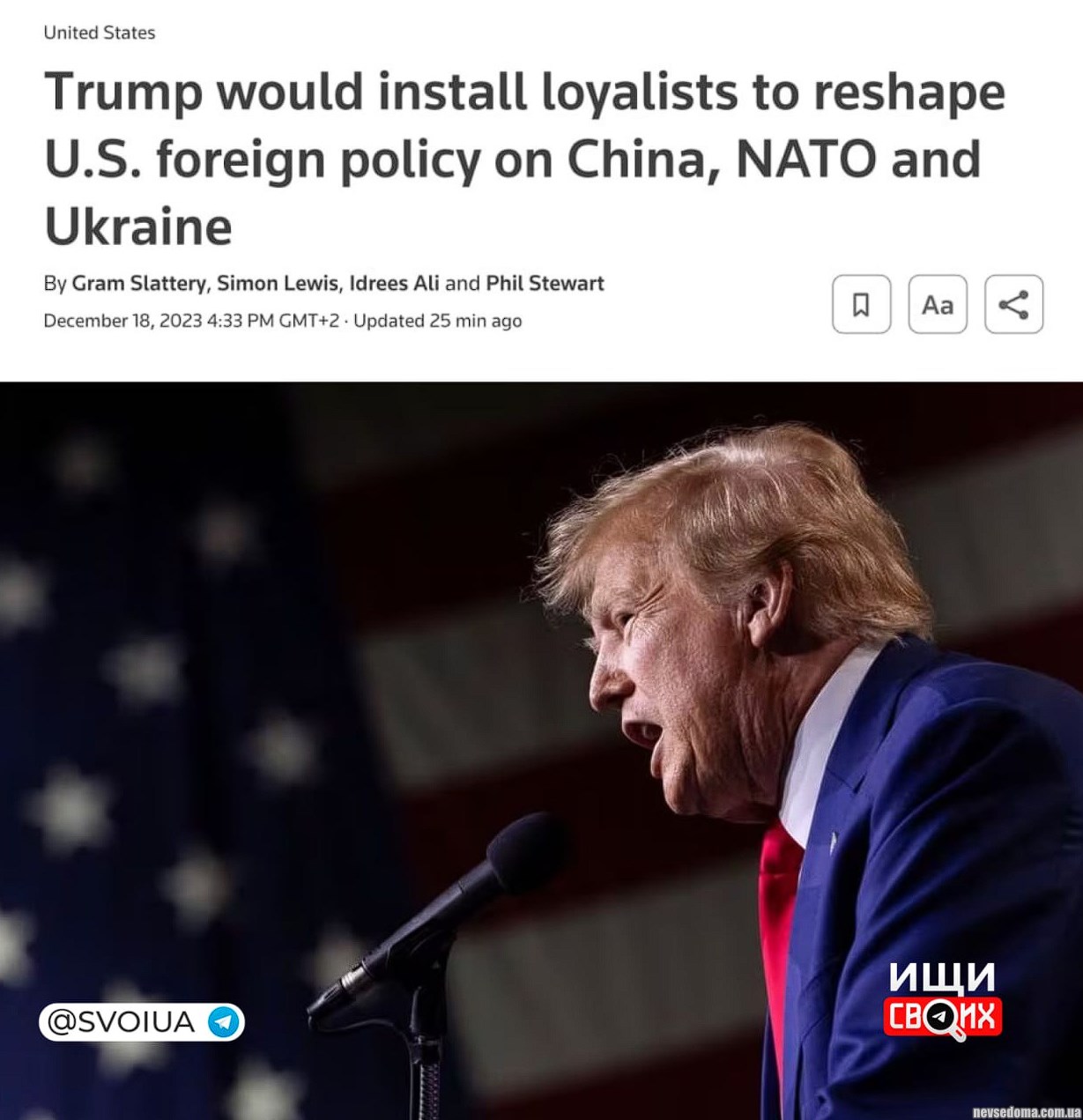 - Прогноз рішень Трампа на посаді президента у разі перемоги на виборах від Reuters