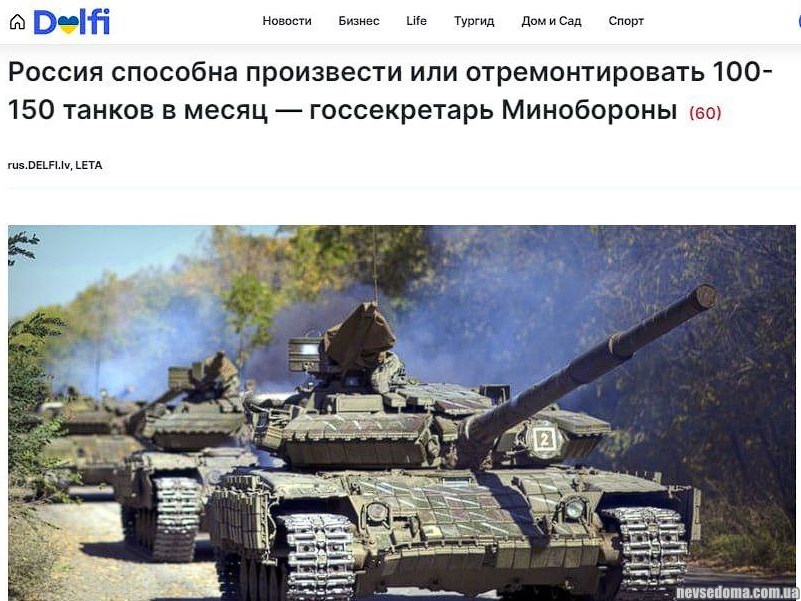 - Російський військово-промисловий комплекс має можливість виробляти та оновлювати приблизно 100-150 основних бойових танків на місяць, що значно випереджає Європу, заявив держсекретар Міністерства оборони Латвії Яніс Гарісонс.