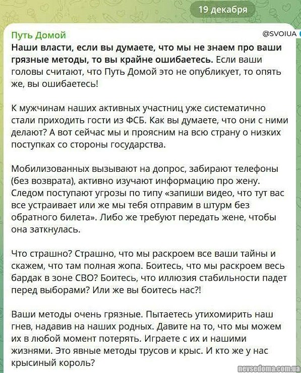 - Вимагають передати дружині, щоб вона заткнулася, - чмобики розповідають, що до них на фронті почали приходити ФСБ.