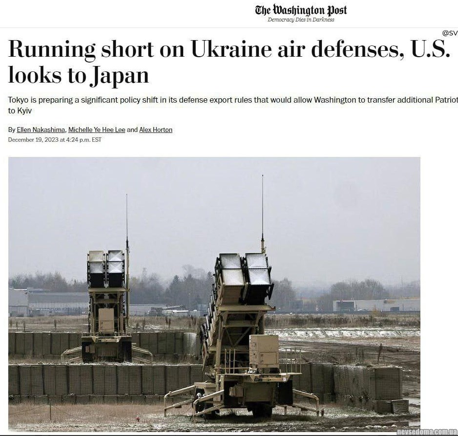 Очікується, що цього тижня Японія внесе зміни до своєї політики, дозволивши експорт кількох десятків ракет Patriot до США, що дозволить Вашингтону передати Україні додаткові засоби протиповітряної оборони.