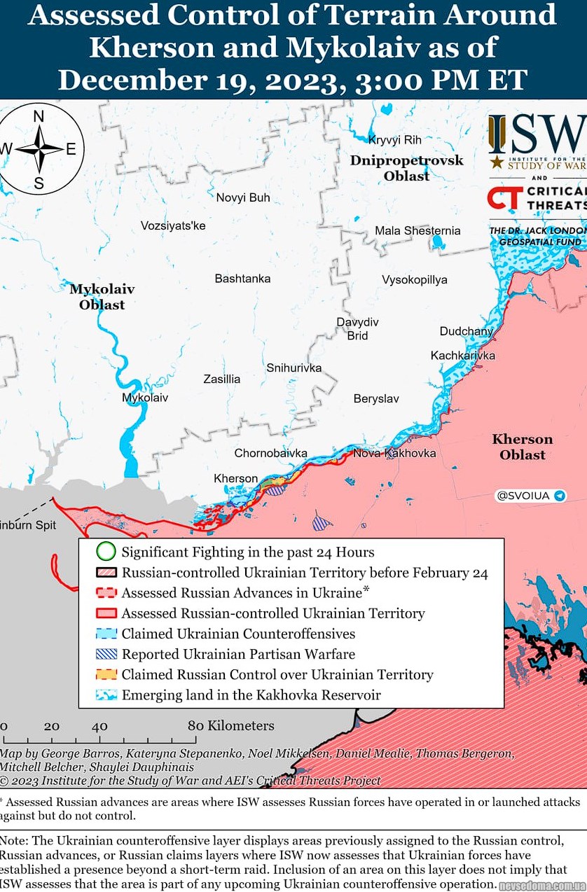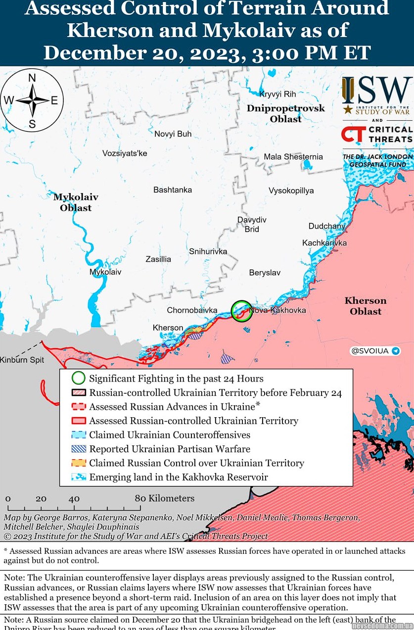 ▪️20 грудня російські та українські війська продовжили позиційні зустрічні бої на кордоні Донецько-Запорізької області, проте підтверджених змін лінії фронту не було.