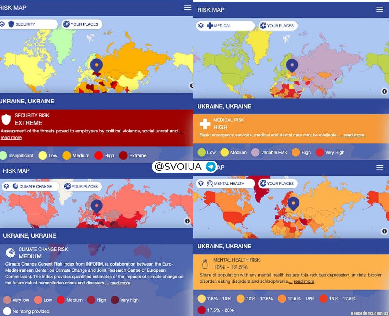Найнебезпечнішими країнами вважаються Сирія, Ірак, Афганістан, Лівія, Ємен, Південний Судан, Центральноафриканська Республіка та Сомалі.