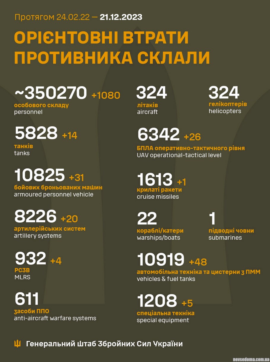 Вторгнення росії в Україну. Хроніка за 18-21 грудня