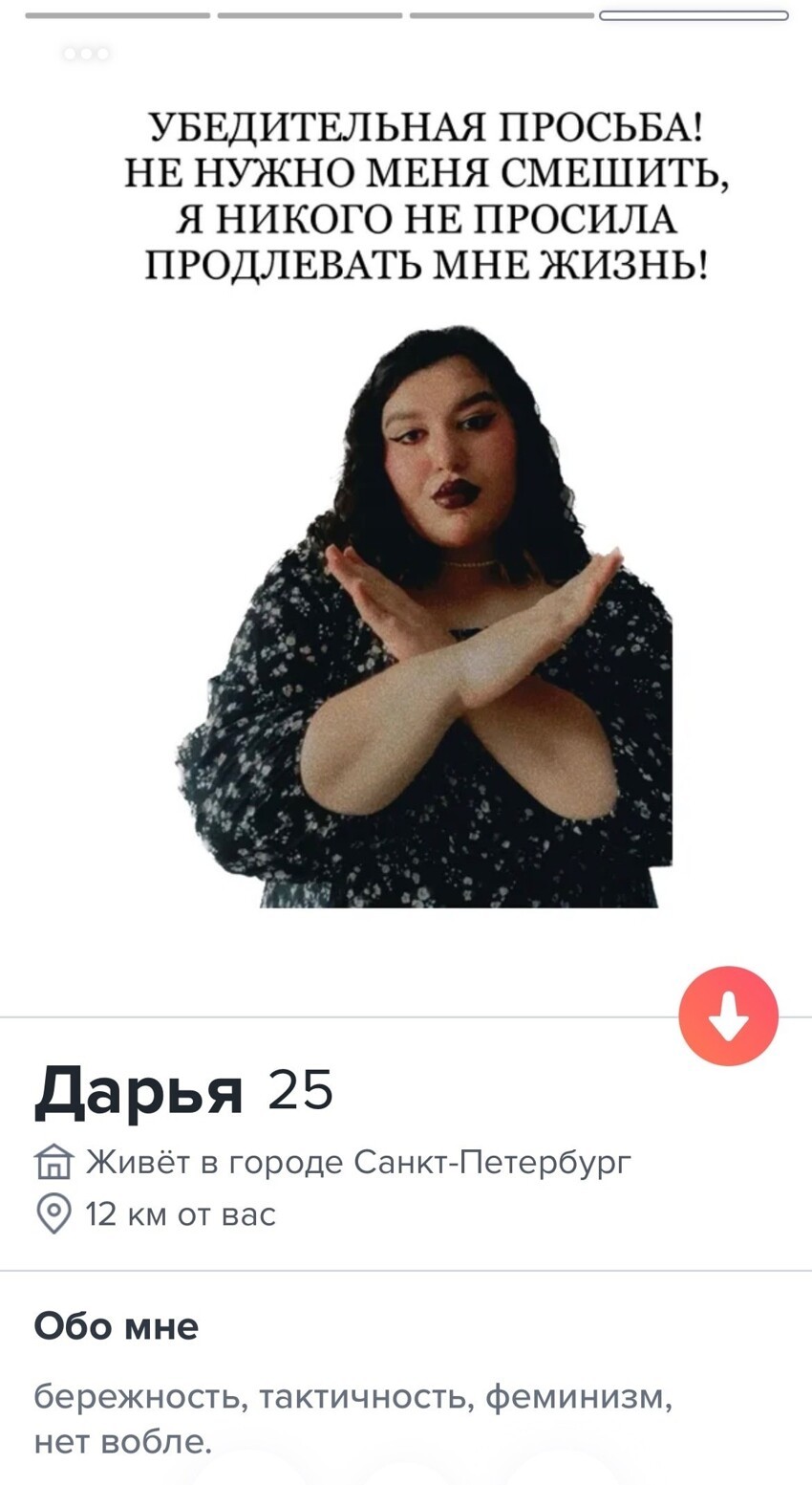Большинство одиноких людей находят сегодня друг друга с помощью интернета. Существует огромное количество различных сайтов, форумов и приложений, где они размещают свои анкеты. В данном посте собраны самые неординарные женские профили, мимо которых просто невозможно пройти мимо.