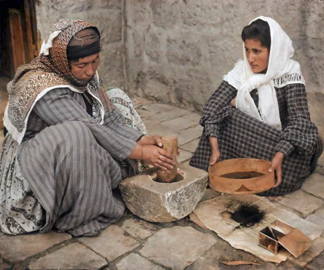 Палестинки перемалывают кофейные зерна, 1905 год.