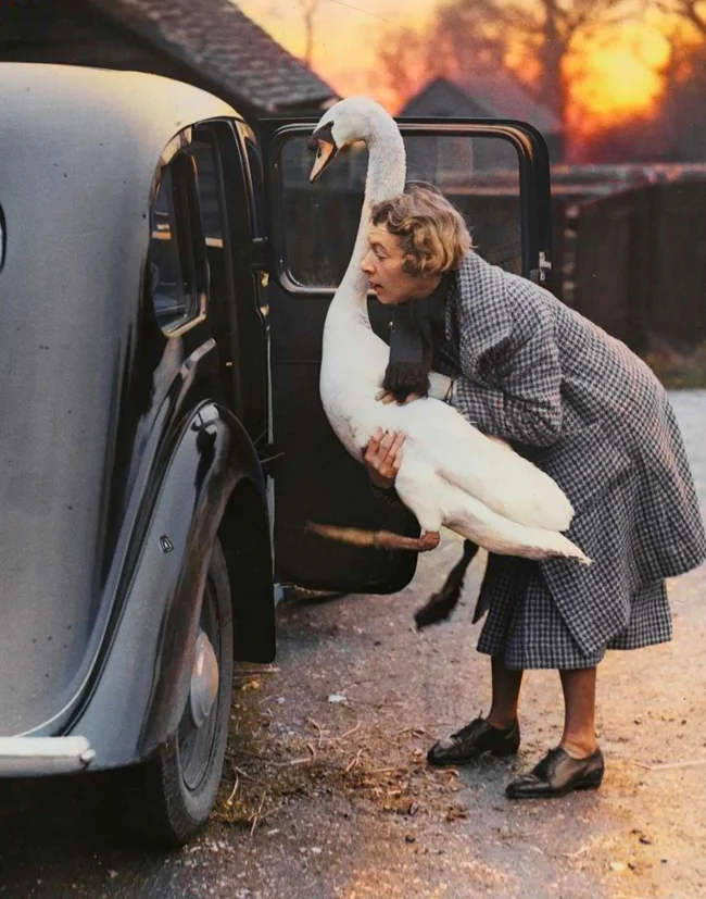 Домашний лебедь по кличке "Лейла" садиться в машину и едет с хозяйкой в магазин. "Лейла" домашний питомец миссис Уотсон из Чешема, графство Бакингемшир. Со слов хозяйки, такой необычный питомец хорошо сторожил двор, не хуже собаки, а также лебедь научился открывать двери в доме.