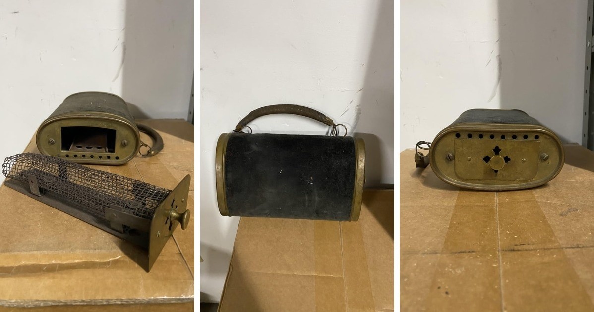 1. Странный кошелёк из металла и бархата с клеткой внутри и вентиляционными отверстиями