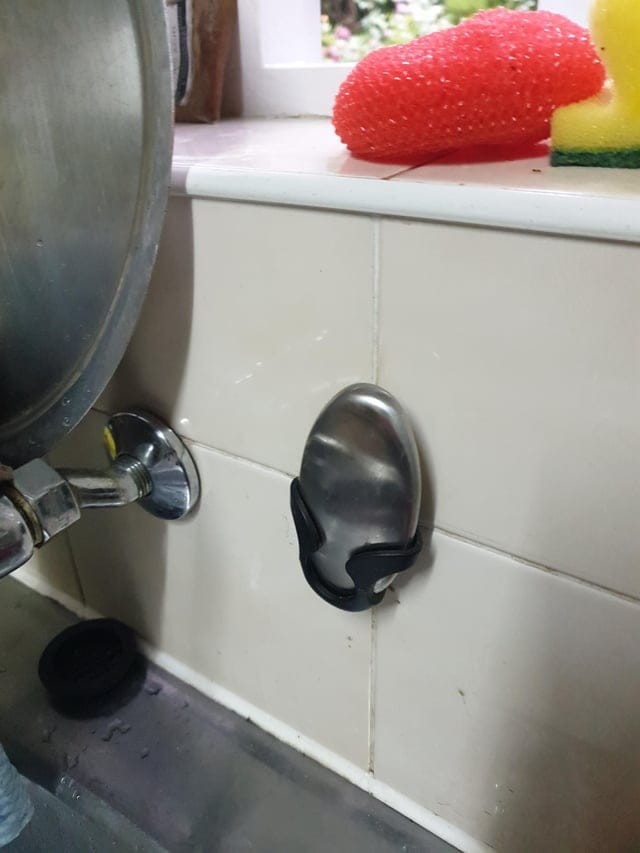 5. Что это за овальная металлическая штука в пластиковом держателе прикреплена рядом с раковиной?