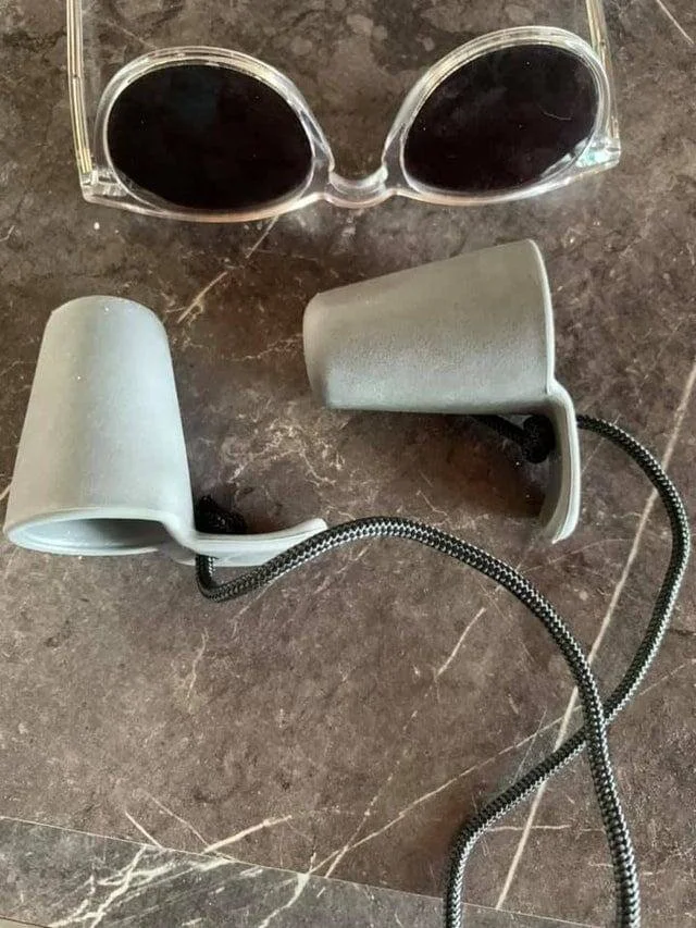 Чашки на шнурке, найдены на пляже озера Мичиган (очки для сравнения размера)