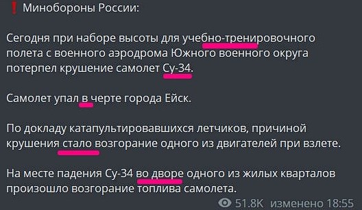 Российские военкоры пишут, что упал Су-34 277-го полка. На видео - взрывы боекомплекта.
