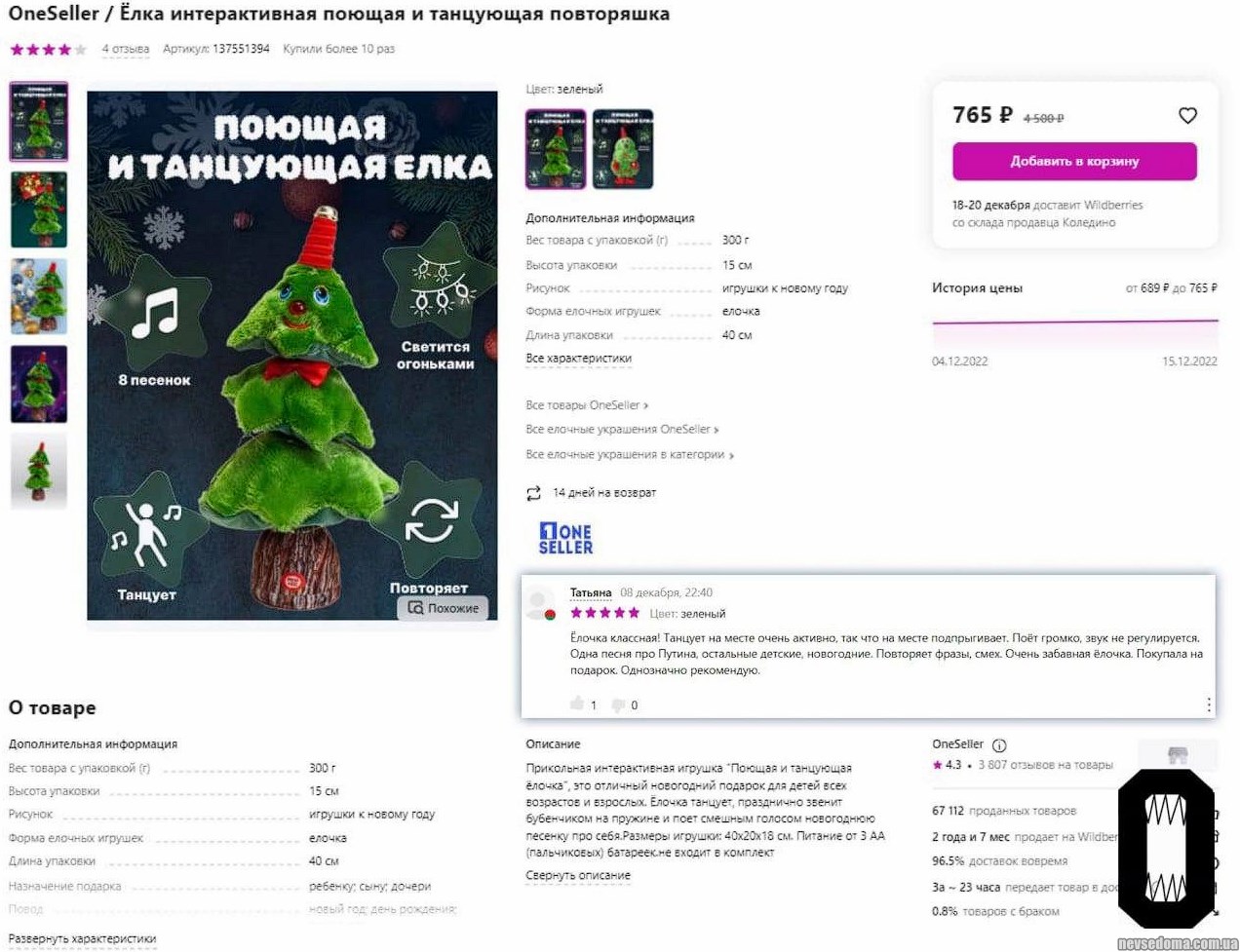 В Москве родители купили на Wildberries ребенку игрушку, которая должна петь новогодние песни. Только вот елка при каждом включении поет «Такого как Путин»